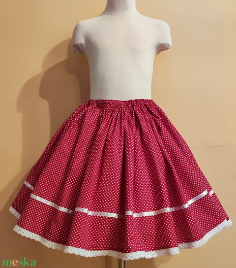 Gyermek néptánc szoknya 35 cm piros, bordó