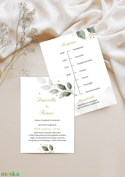 Mindkét típus tartós, prémium érzést ad, a Greenery dizájnnal harmonizál, így a meghívó valóban különleges lesz.