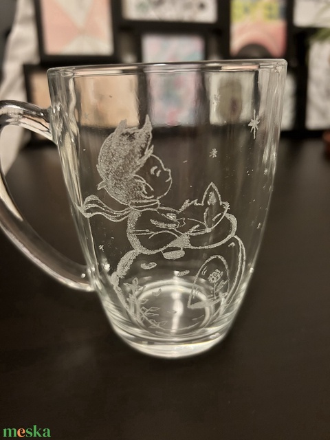 Kézzel gravírozott üveg bögre