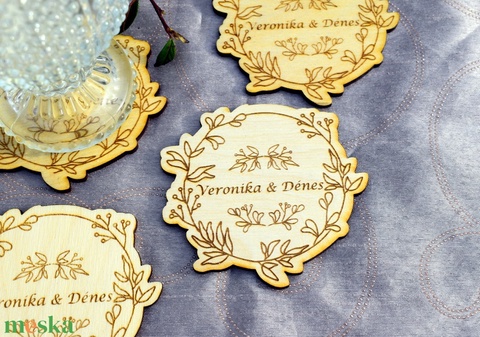Nevesített poháralátét fából, szöveggravírozással