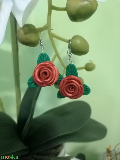 Egyedi rózsás lógó fülbevaló, süthető gyurmából