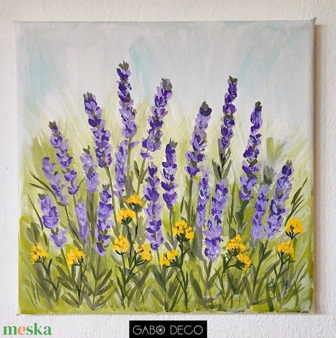 Virágmező, levendula mező, levendulás színes nyári akril festmény, vászonkép