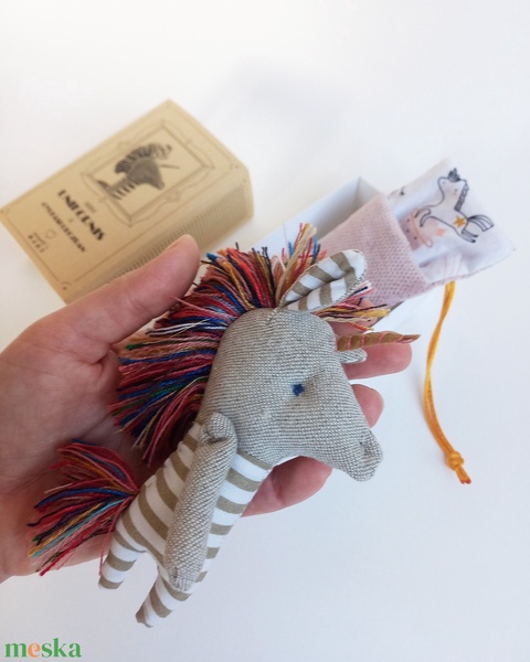 Unikornis - textiljáték gyufásdobozban, marokjáték