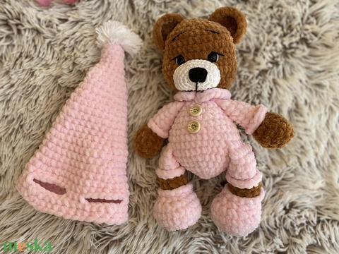 Milla plüss horgolt maci masnival és sapkával