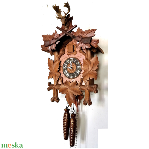 Faragott Schwarzwaldi kakukkos óra dámszarvas trófeával