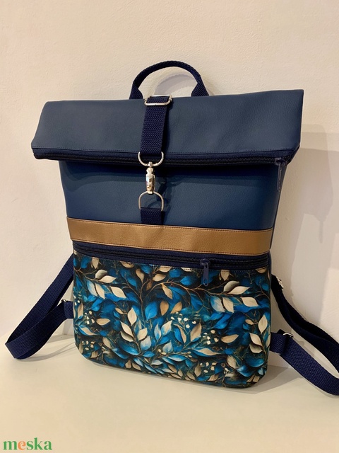 Készleten! Roll Top-Türkiz levél mintás-Vízálló-Hátizsák-Hátitáska