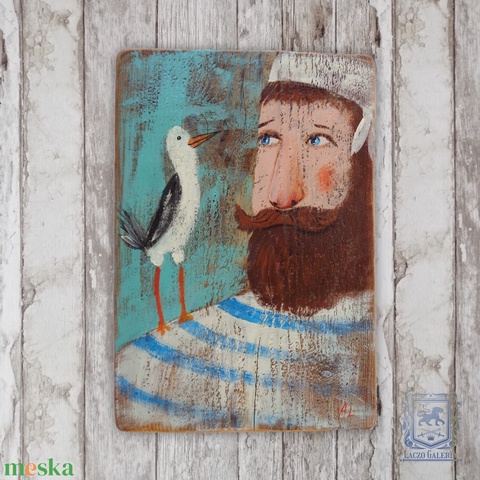 Tengerész - Rusztikus Fatábla, Ajándék ötlet - Egyedi Falidísz - Gyerekszoba, Sirály
