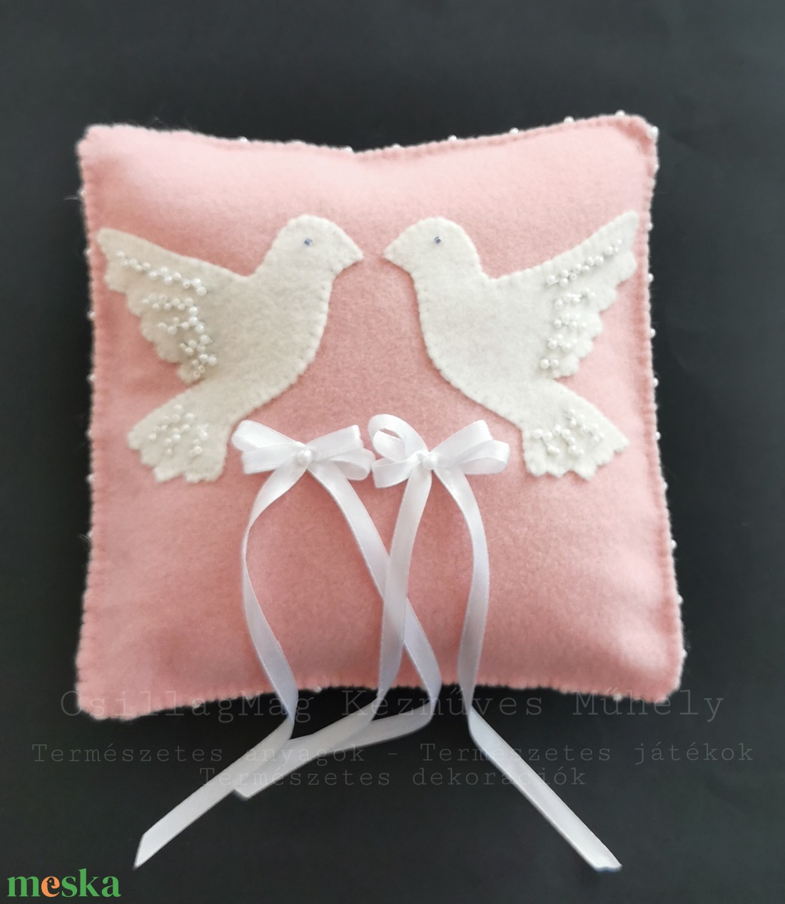 Gyűrűpárna Hófehér Galambokkal Természetes Anyagokból Gyapjúfilc Gyapjú Hímzéssel Gyöngyökkel Szatén Masnikkal Esküvőre