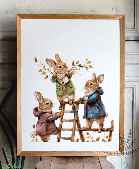 Nyúl Péter stílusú illusztráció, gyerekszobai falikép
