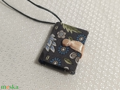 Sötétszürke virágos mini könyvmedál