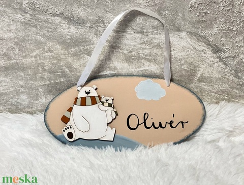 Jegesmedvés névtábla – névre szóló babaszoba falidísz