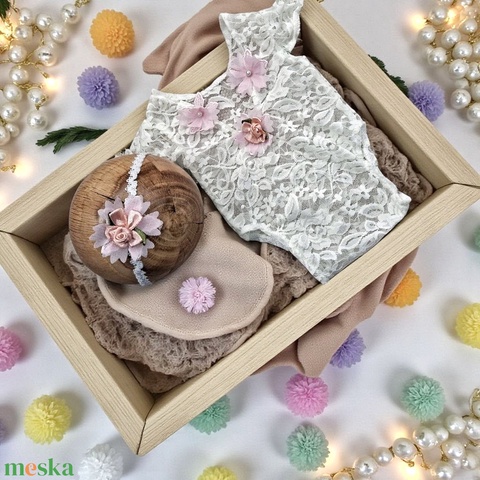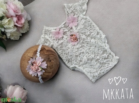 Csipke body és fejpánt szett Újszülött fotózáshoz
