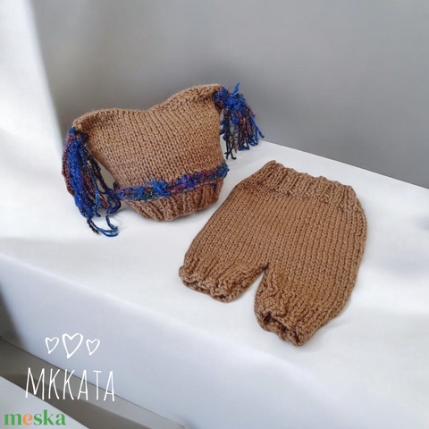 Kötött baba sapka és nadrág szett újszülött fotózáshoz