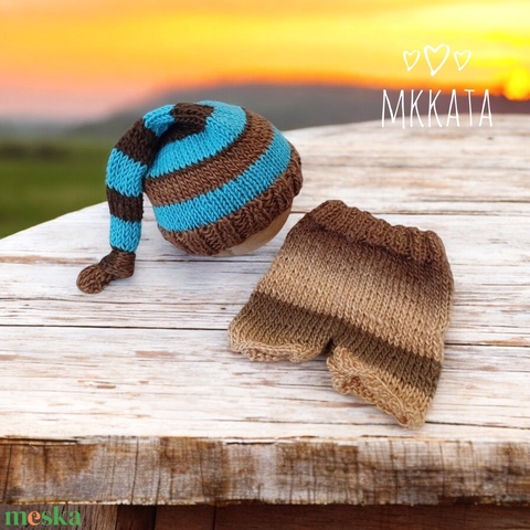Kötött baba sapka és nadrág szett újszülött fotózásra