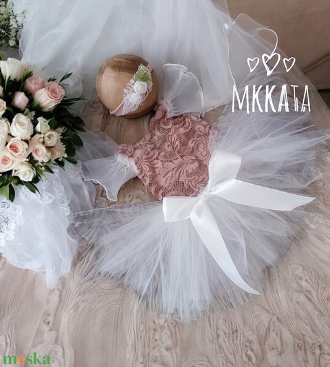 Tüll szoknya, csipke body és fejpánt szett Újszülött fotózáshoz