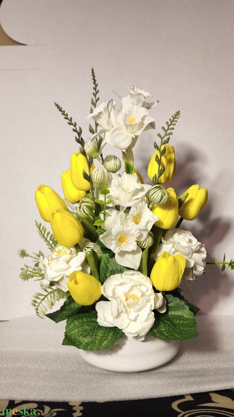 Tulipános tavaszi asztaldísz-sárga,fehér