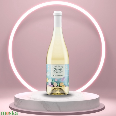 Húsvéti öntapadós üveg címke - kék deszkán színes tojásokkal