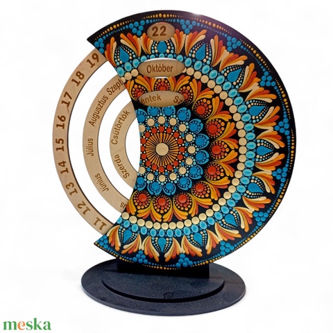 Pontozott mandala fa öröknaptár, kék-narancs