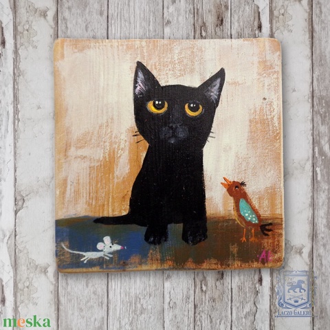 Fekete cicus - Rusztikus Fatábla, Vicces Ajándék ötlet - Falikép, Egyedi Falidísz, Macska, Cica