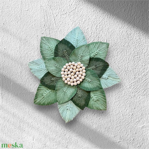 Makramé virág fali dekoráció, természetes anyagokból, föld színekben. Modern makramé fali dísz nappaliba, hálószobába