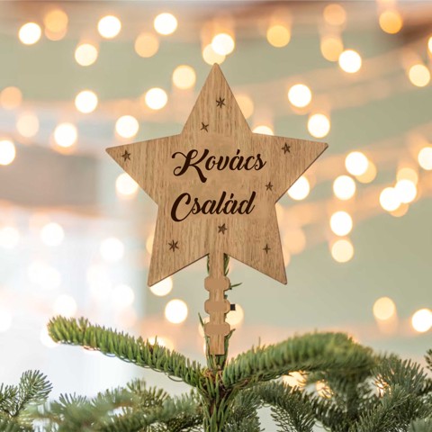 Tegye karácsonyfáját igazán különlegessé ezzel a lézervágott, megszemélyesíthető fa csúcsdísszel! Természetes fából készült, finoman kidolgozott részletekkel, amelyeket egyedi gravírozással személyre szabhat. Az időtálló design és a természetes anyag tökéletesen illik minden ünnepi stílushoz. Ez a csúcsdísz nemcsak a karácsonyfa éke lesz, hanem egyedi emlékként is megőrzi az ünnepi pillanatokat. Mérete : 15 cm Karácsonyfa csúcsdísz – Egyedi és személyre szabható ünnepi ékesség A karácsonyfadíszítés legfontosabb eleme a csúcsdísz, amely az ünnepi fa koronájává válik. A lézervágott, természetes fa csúcsdísz nemcsak elegáns megjelenésével hódít, hanem azzal a lehetőséggel is, hogy személyre szabható gravírozással teheti igazán különlegessé. Egyedi gravírozás az ünnepi pillanatokért A csúcsdíszt teljes mértékben az Ön igényeire szabjuk. Adjon hozzá nevet, évszámot vagy egy kedves üzenetet, amely az ünnep varázsát még személyesebbé teszi. Ez a személyre szabott dekoráció tökéletesen illik a család karácsonyfájára, és örökre megőrzi az emlékeket. Természetes és időtálló design A dísz természetes fából készült, amely melegséget és harmóniát sugároz. A precíz lézervágás lehetővé teszi a részletes kidolgozást, így minden egyes darab műalkotásnak számít. Tartós anyagának köszönhetően ez a dísz évről évre a karácsonyfa elmaradhatatlan része lesz. Minden stílushoz illeszkedik Akár minimalista, klasszikus vagy modern dekorációt választ, ez a fa csúcsdísz tökéletes kiegészítője lesz karácsonyfájának. Természetes megjelenése remekül kombinálható más díszekkel, miközben finom eleganciát kölcsönöz a fa összképének. Ajándék, amely örömet szerez Ez a lézervágott csúcsdísz nemcsak a saját otthonában mutat jól, hanem ajándékként is kiváló választás. Lepje meg szeretteit egy személyre szabott darabbal, amelyet minden évben elővehetnek az ünnepi készülődés során. Egyedi és érzelmekkel teli ajándék, amely különleges helyet foglal el a fa tetején. Tegye tökéletessé a karácsonyfát! Válassza a Lézervágott, megszemélyesíthető fa csúcsdíszt, hogy az ünnepi dekoráció személyes és igazán emlékezetes legyen. Kifinomult design, természetes anyag és egyedi gravírozási lehetőség – minden, ami egy tökéletes csúcsdíszhez szükséges!