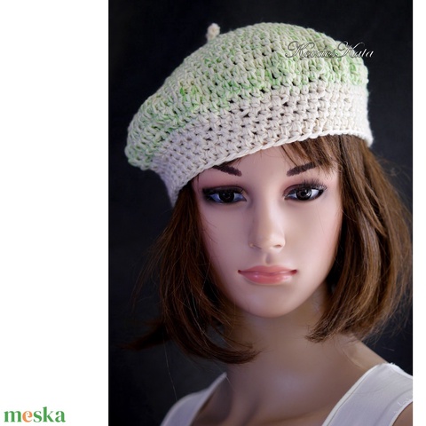 DORCI / zöldalma - horgolt pamut barett, svájci-sapka