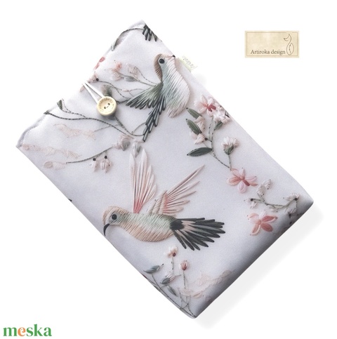 Vízálló KÖNYVTOK, hímzett madár és virág mintával - Artiroka