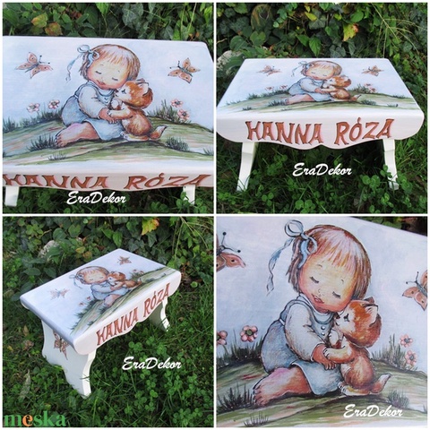gyerekszoba bútorok, romantikus antikolt festéssel készült fa ajándéktárgyak a provence-i stílus jegyében