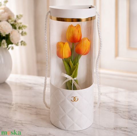Élethű tulipánok virág táskában-sárga