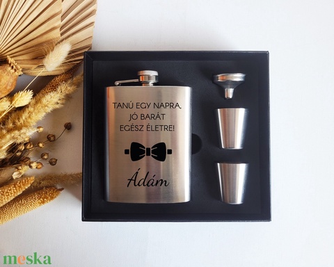 Tanúfelkérő flaska, laposüveg személyre szabva szettben díszcsomagolásban