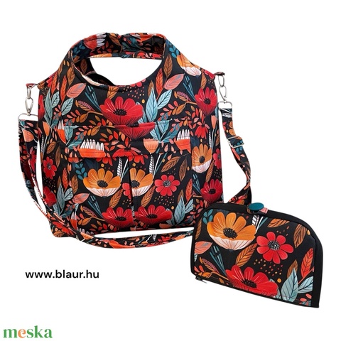Blaur Fekete alapon piros virág mintás válltáska / kézitáska #TV1