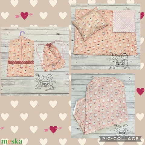 Nyuszi mintás ovis vagy kisgyermek ágynemű szett (minkys) + ovizsák tornazsák szett + derékalj