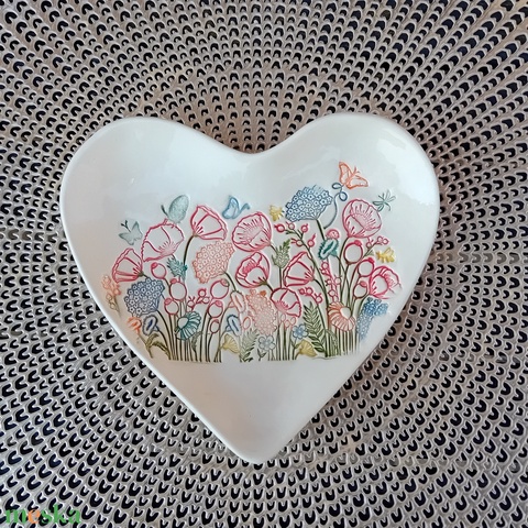 Kerámia tálka, virágmintás szív