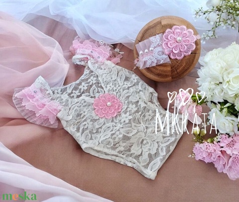 Csipke body és fejpánt szett Újszülött fotózáshoz