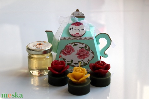 Nőnapi vintaige mézes teáskanna ajándék díszdoboz