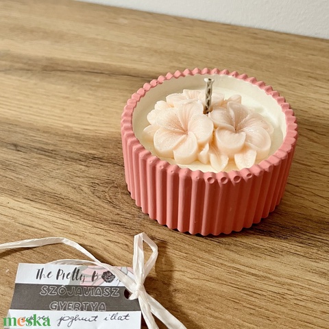 Szójaviasz gyertya virág díszítéssel kerámia kaspóban