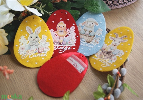 Névre szóló "hímes" tojás locsolkodóknak, pénzátadó