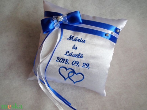 Masnis, gyöngyös hímzett gyűrűpárna dupla szívvel