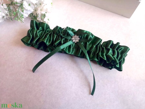 Smaragd zöld szatén combcsipke, legényfogó