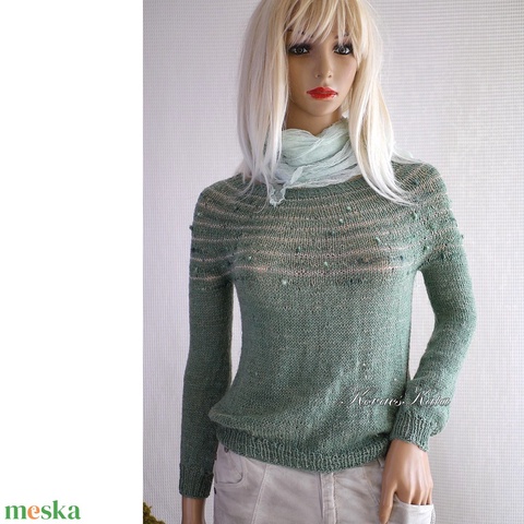 LAZY LINEN / zsálya - exkluzív gyapjú-len kézzel kötött pulóver