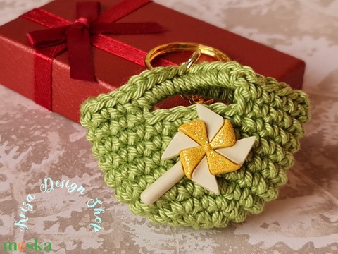 Kézműves horgolt kulcstartó - Shopping bag (Csillogó sárga szélforgó)