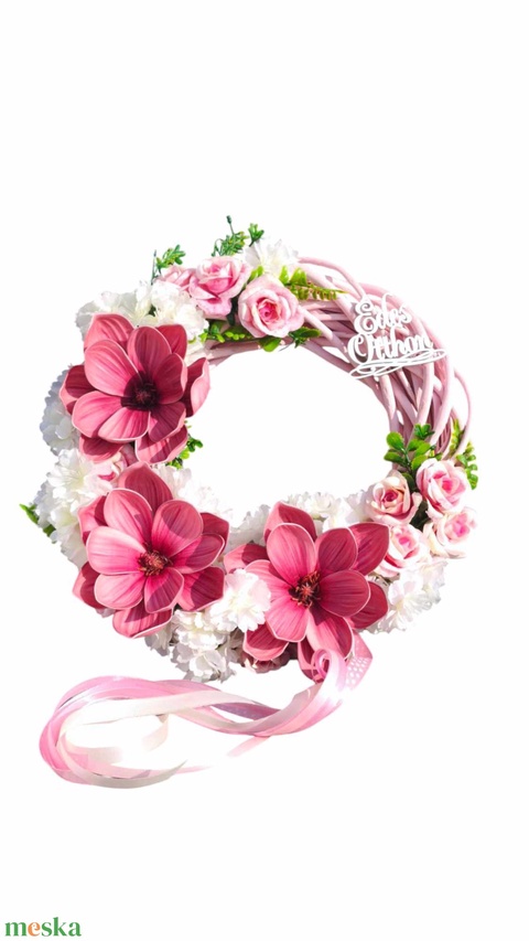 Mályva-fehér magnóliás tavaszi ajtódísz
