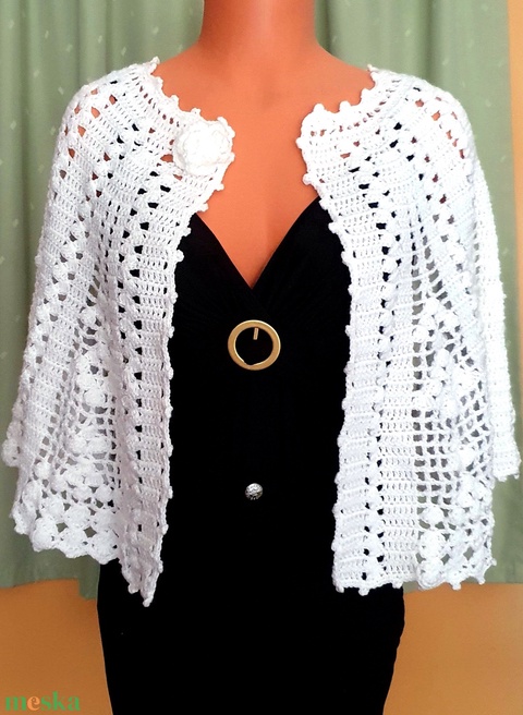 Csipke boleró, horgolt fehér, modern pelerin, vállkendő, poncsó