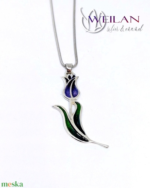 Hej'tulipán - Virágszálam ezüst tűzzománc medál lila