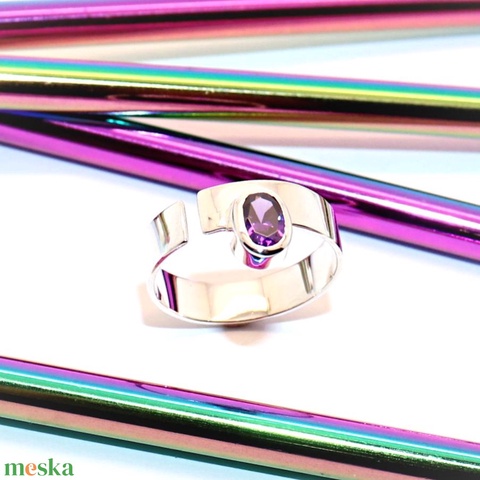 Lila cirkóniás, női ezüst gyűrű, állítható (EGY.289)