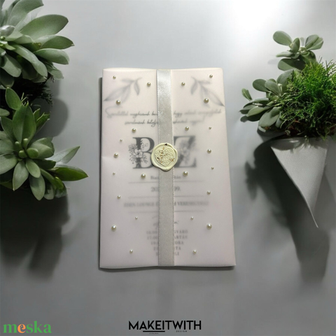Ez a kifinomult és elegáns esküvői meghívó tökéletes választás azok számára, akik egy exkluzív és romantikus meghívót szeretnének különleges napjukra.