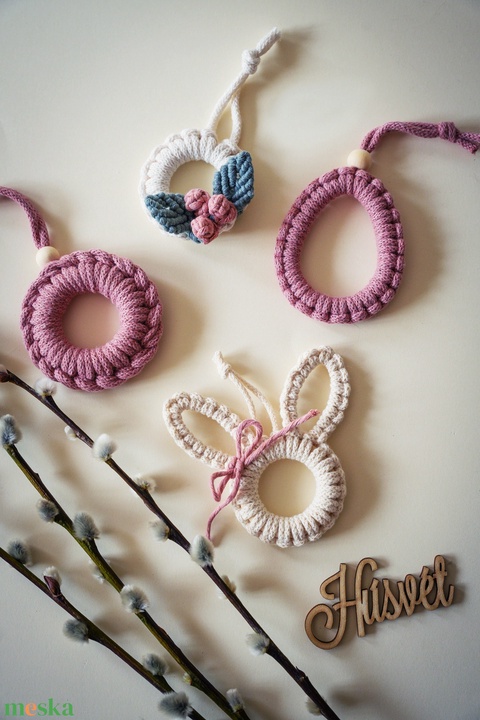 Négy darabos húsvéti nyuszis tavaszi makramé dekorációs szett