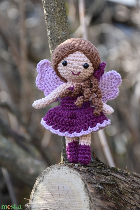 Horgolt lila tündér baba