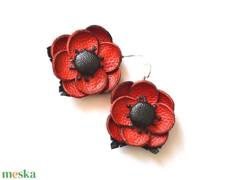 Pipacs-extra fülbevaló valódi bőrből