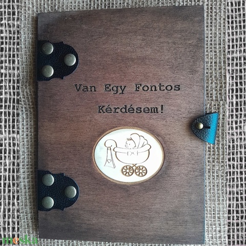 Keresztszülő Felkérő,Fából készült,Gravirozott,Könyvecske,Bőrpántos Kötéssel.